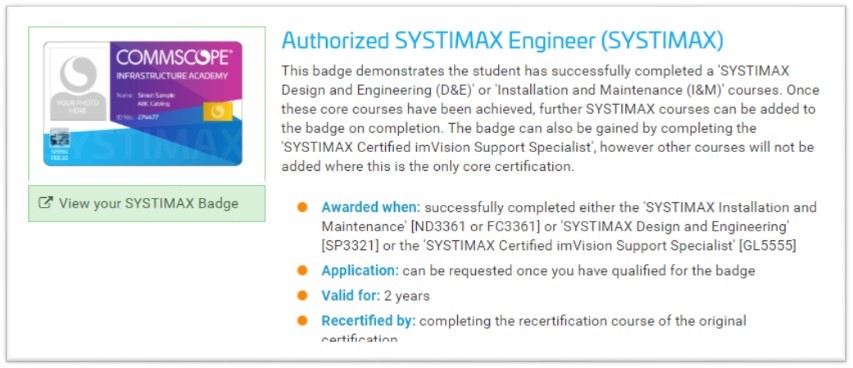 For CommScope Partners, a photo ID badge will be provided for relevant training courses which will be visible from the badge page of the 'My Dashboard and via the Infrastructure Academy App. For more information on Badges and which courses are ...